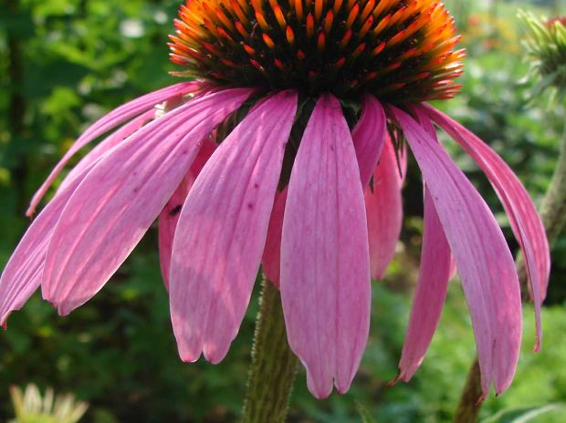 Kod purpurne rudbekije koristimo cvjetne trave (od svježih istisnemo sok), rjeđe korijenje, korisni su i sušeni nadzemni dijelovi, cvjetovi i korijenje za čajeve. Pospješuje i liječenje jakih prehladnih oboljenja dišnih puteva i smanjuje količinu želučane kiseline. Vanjska primjena je kod kožnih bolesti, psorijaza i furunkula. Pomaže u zacjeljivanju tvrdokornih rana i opeklina, smanjuje upalu, koristan je za grgljanje kod upaljenog grla i za ispiranje desni.