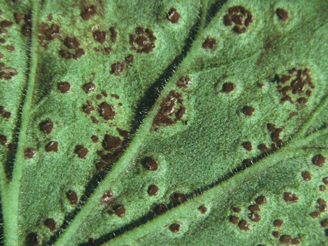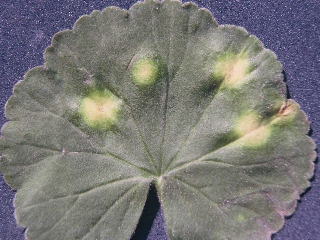 listova pelargonije pojave se okrugle žućkaste pjegice. Na