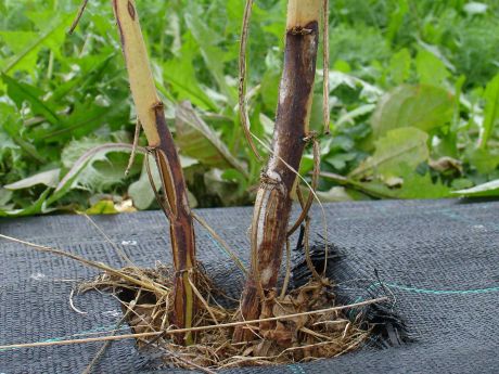 mrljama koje su najčešće uz pupove te gljivici koja se prepoznaje po izbrazdanoj