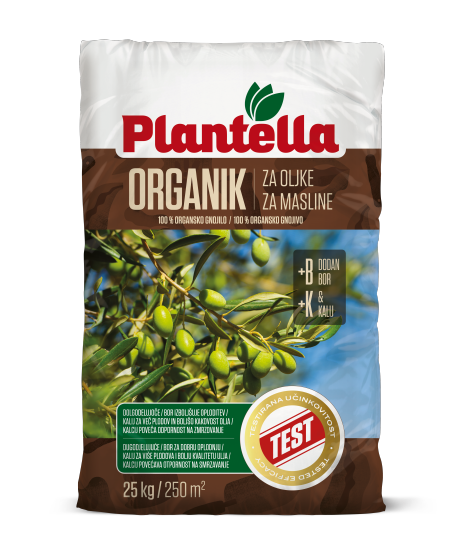 OpisGnojivo Organik za masline je stopostotno organsko gnojivo u obliku peleta, termički obrađeno i time oslobođeno nečistoća i sjemena korova te bolesti. Visok udio organske mase ubrzava stvaranje humusa u tlu, zadržava vodootporna hranjiva u tlu, poboljšava prozračnost tla, povećava sposobnost zadržavanja vode te potiče aktivnost mikroorganizama u zemlji. Posljedica svega toga je da biljke učinkovito preuzimaju hranjive tvari, što znači i veću iskorištenost mineralnog dijela gnojiva, bolji rast biljaka, manje ispiranja mineralnih hranjiva u podzemne vode te manje zagađivanja okoliša.