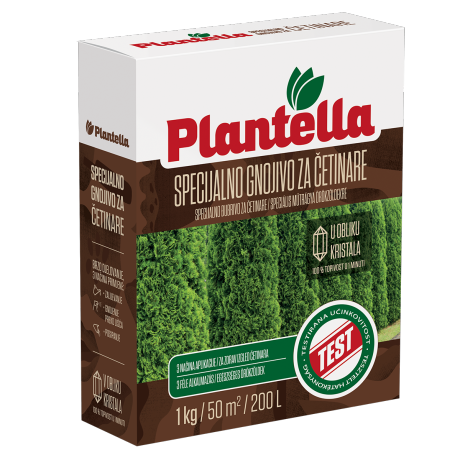 Plantella specijalno gnojivo za četinjače je prilagođeno svim zahtjevima četinjača. Omogućava pravilnu prehranu biljaka, dobar rast i zdrav izgled svih vrsta četinjača. Dodatak magnezija sprječava da iglice posmeđe. Upotrebljava se za gnojenje jelki, borova, smreka, ariša, tisa, kao i klekova, borovica itd.