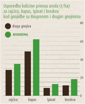 kupus, breskvu kod gnojidbe s Biogrenom i drugim gnoijvima.