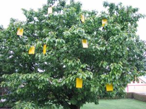 Bio plantella bijele ljepljive ploče. Na njih se nalijepe jabučne osice koje ponekad mogu napraviti priličnu štetu. Ako objesimo dovoljno ploča, šteta će biti značajno manja. Pred cvatnjom trešanja objesimo i