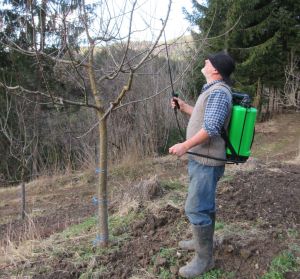 Prskanje je posao kojeg baš nitko ne voli raditi. Nažalost, bez toga ne možemo dobiti kvalitetne plodove. Sredstva za prskanje su međusobno vrlo različita, više ili manje agresivna i, naravno, više ili manje učinkovita. Informacije o sredstvima za prskanje i njihovoj učinkovitosti možemo dobiti u poljoprivrednim apotekama ili kod iskusnijih voćara. Kod samog je prskanja vrlo važno sigurno postupanje s pripravcima i, naravno, uporaba osobne zaštitne opreme (maska, gumene rukavice, pokrivalo, čizme).