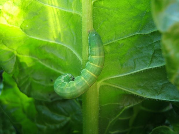 Na povrću, najviše na kupusu, karfiolu, brokuli.., na voćkama i ukrasnim biljkama, pogotovo ružama i pelargonijama, vidimo omotano, šupljikavo izgriženo lišće.