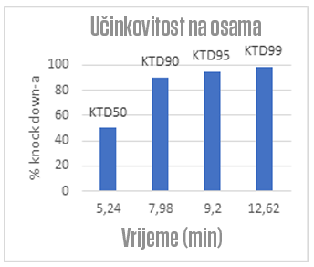 Effect insekticid protiv osa i stršljena pokazao se kao učinkovito sredstvo za uništavanje gnijezda na terenskim ispitivanjima, koje osigurava 100% učinkovito djelovanje za manje od 15 minuta, dok ni unutar 24 sata nema vidljive aktivnosti osa i stršljena oko gnijezda.