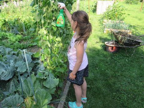 organskim gnojilom Plantella Organik, v visoki gredi so že vrtna kreša, solata,
