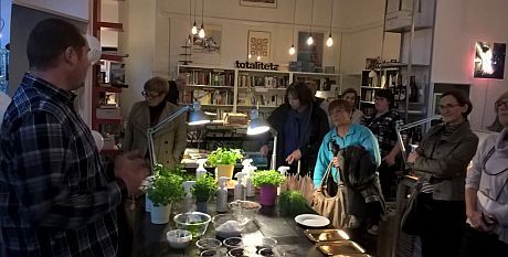 Začeli smo s predavanjem o presajanju zelišč v lonce, ki jih postavimo na sončno okensko polico in sadimo v kakovostno zemljo Urban Jungle Organska zemlja. Vedno je priročno in pametno narediti drenažo iz kamenja na dnu posode, saj vode ne sme zastajati v območju korenin, ker to vodi v gnitje korenin. Tematika je obsegala sušenje zelišč v električnem sušilniku, na preprostih mrežastih sušilcih in v obliki šopkov. Zaključili smo teoretični del z vprašanji o pogostih težavah na vrtu pri vzgoji zelišč in načinu rezi.
