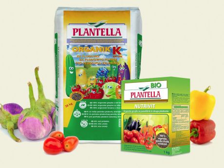 in sicer 2 kg Plantella Organik K na 10 m2, ali Bio Plantella Nutrivit za paradižnik in ostale plodovke, ki zaradi svoje oblike hitro sprošča hranila in tako zadosti nenasitnim plodovkam.