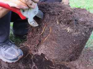 V loncu se korenine močno razrastejo in prepletejo med sabo. Ker rastejo v krogu po obliki lonca, lahko rastlino zadušijo. Zato s škarjami raztrgamo zunanje koreninice, preden vstavimo koreninsko grudo v sadilno jamo.