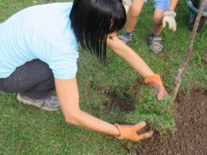 Okoli posajenega drevesa položimo nazaj travno rušo, ki smo jo prej previdno odstranili. Če pustimo prostor prazen, je dobro uporabiti zastirko, saj bo tako zemlja zaščitena.